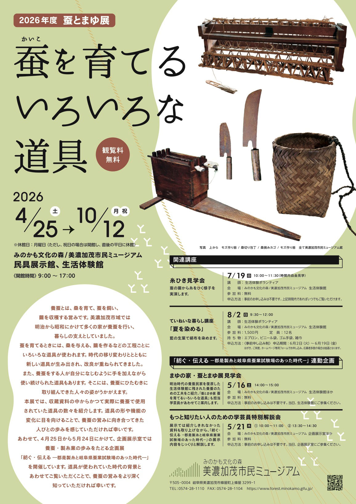 | 2026/04/01 | 展示準備のため4月3日から民具展示館を閉室します。 |