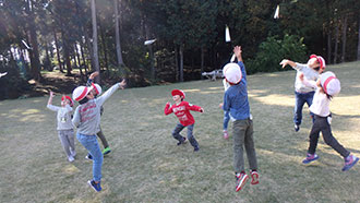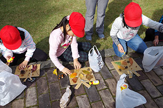 ○活動内容 文化の森の広い敷地内にある森を散策し、秋の森の様子を、 五感を使って感じることができる活動です。さらには、自分た ちで木の実や落ち葉を集め、それらを使って壁かざりやおも ちゃを作ることもできます。 ○H30年度実施校 10/19 白川町3校1・2年生合同学習(白川小、白川北小、佐 見小) 、11/1 太田小1年生 、11/2 川辺町立川辺東小1年 生、11/8 加茂野小1年生、11/9 蜂屋小1年生、八百津町立八 百津小1年生、11/13 古井小1年生 、11/14 下米田小1年生 、11/16 伊深小1年生、三和小1・2年生、可児市立土田小 1年生、11/20 加茂野小2年生、11/22 東白川村立東白川小1 年生 、12/6 川辺町立川辺西小1年生 |