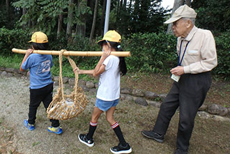 ○活動内容 江戸時代にため池づくりをした「福田太郎八」について学習し ます。緑のホールでは、太郎洞池の場所や堤防の造りを確認し たり、教科書には掲載されていない福田太郎八のことを学芸員 から聞いたりします。堤防づくりに使った道具の体験では、 「もっこ・担い棒」「せんつき(たこどうつき)」を使ってみ たり、その他の道具についてのお話を聞いたりします。また、 実際に文化の森の西側にある「太郎洞池」まで歩いて行き、堤 防の高さなど確認します。体験や実物を見ることで、ため池づ くりの苦労や規模を実感し、理解を深めます。 ○H30年度実施校 10/4 加茂野小4年生、11/2 山之上小4年生、11/28古井小4年 生、12/5 山手小4年生、12/6 伊深小4年生、12/18 下米田小 4年生 |
