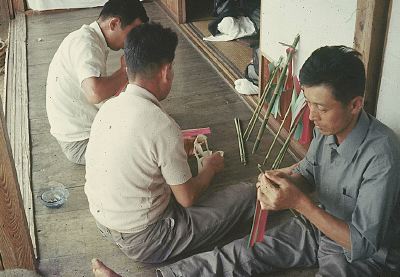 上切の薬師の施餓鬼もとにて旗を作る