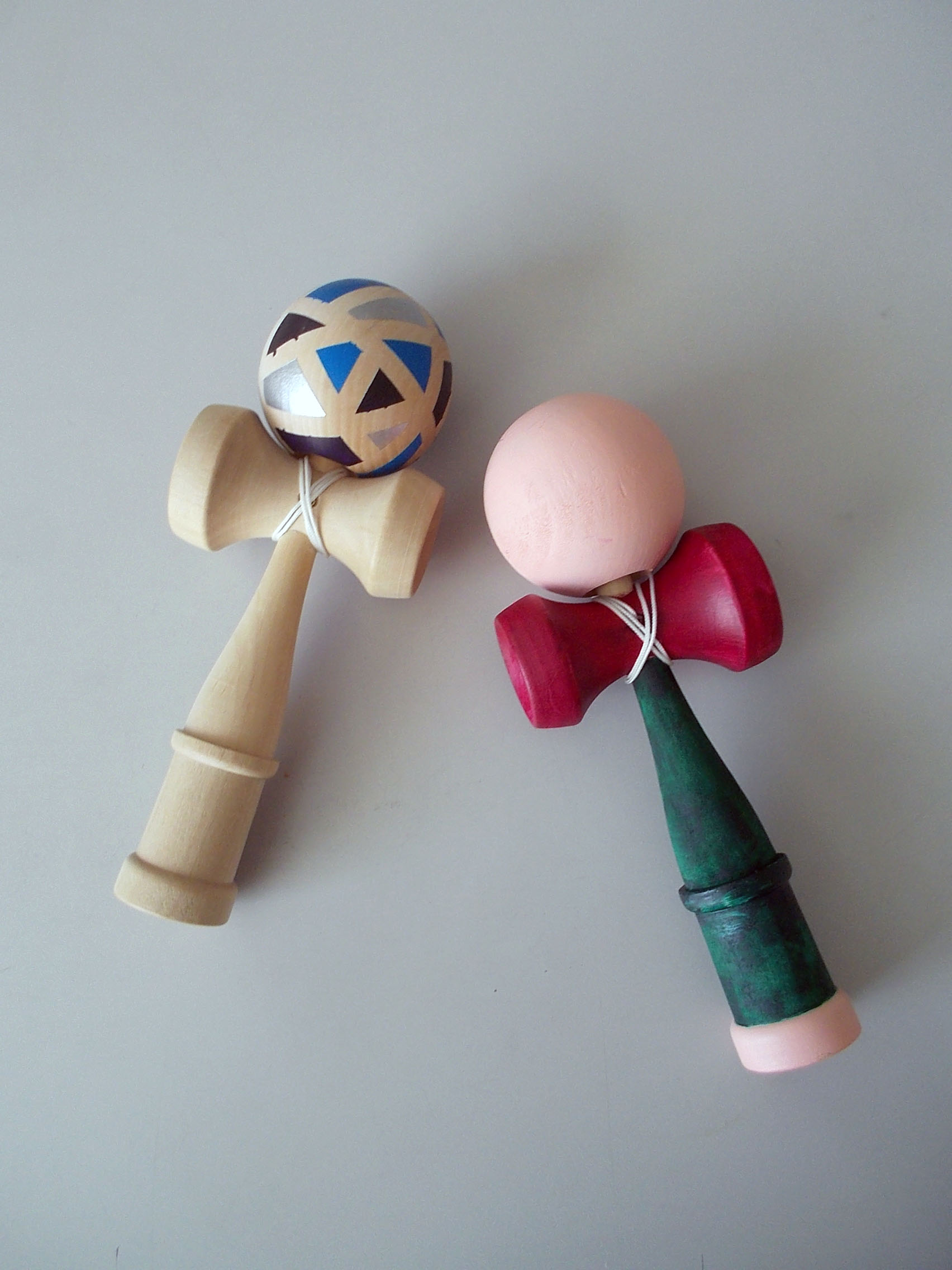 アクリル絵の具を塗って、オリジナルのけん玉にしましょう。